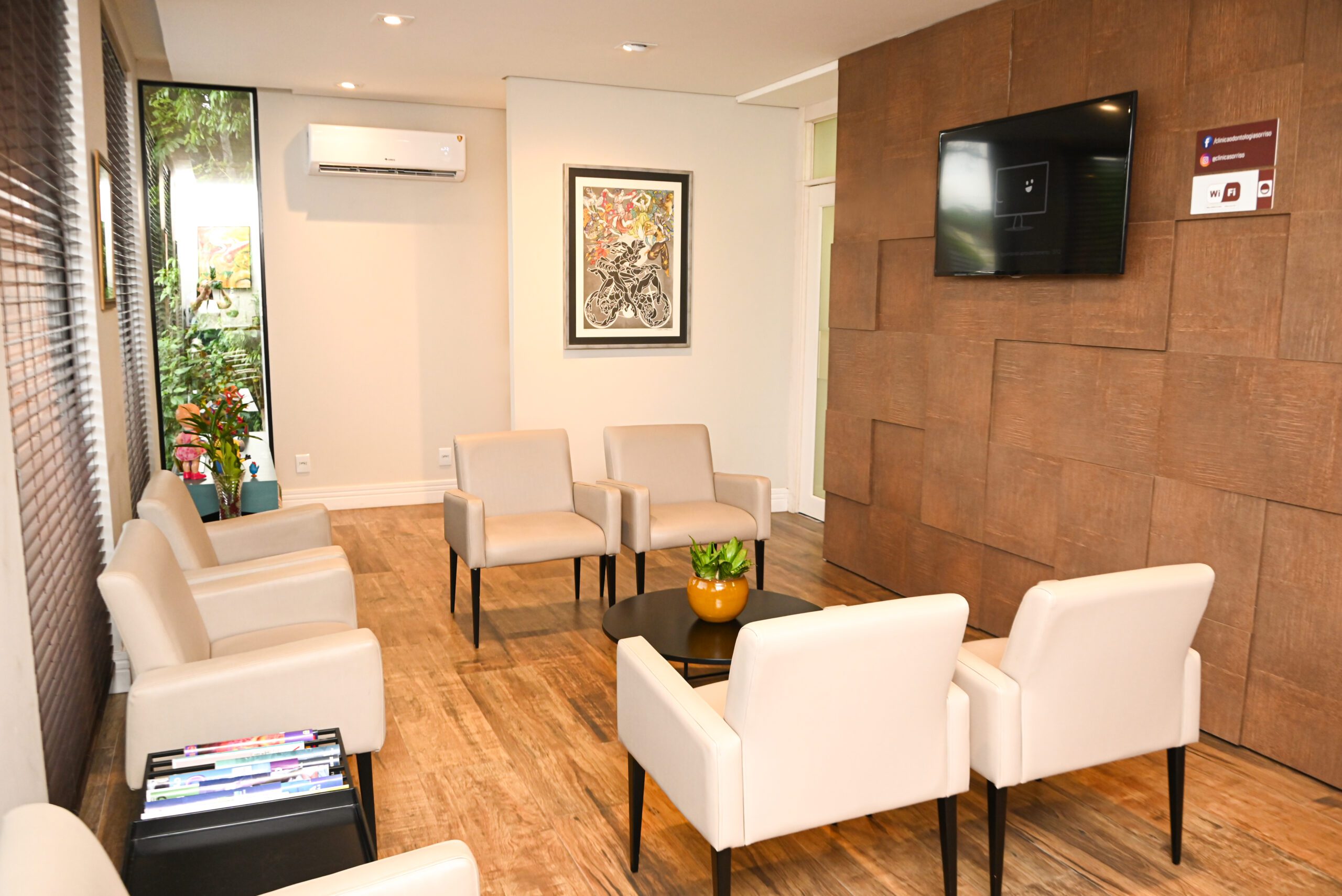 Dispomos de uma recepção com área kids, para as crianças se divertirem antes e depois da consulta, deixando a expectativa mais amena. Os consultórios são todos voltados para o bosque, o qual transmite uma sensação de tranquilidade nas consultas.